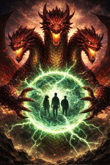 Just then, the sky begins to darken – but not all of it. It is almost like a shadow is falling upon the sky. It is the red three-headed dragon in Will’s painting. It is enormous.