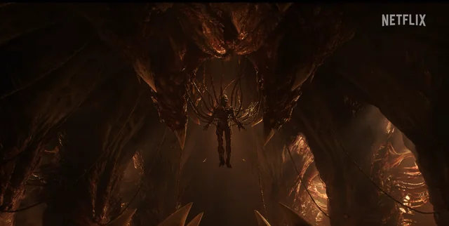 We see Vecna inside the MF hanging below its beating heart saying, “Fear me. FEAR ME! We are now fully one, once again!”